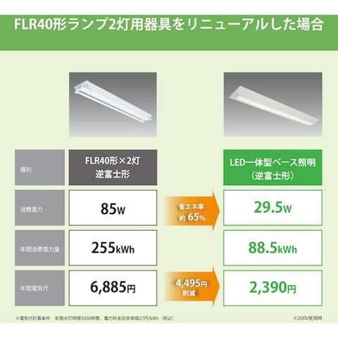 ・FLR40、FL40蛍光灯からのリニューアル用LEDベースライト両反射笠形プルスイッチ式