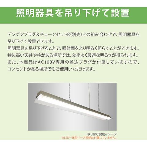 ・ライトユニット同梱タイプ両反射笠形プルスイッチ付LED一体型照明です。・FLR40形ランプ2灯用器具相当の明るさ明るい昼白色でプルスイッチ付です。・天井ボルトの出シロ長は、最長35mmまで切断することなく施工可能です。・ライトユニット+本体 同梱包品で、荷運びも楽で環境に優しい商品です。