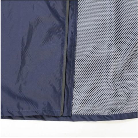 ・色:ネイビー・サイズ:L・身長(cm):170~180・胸囲(cm):90~98・ウエスト(cm):78~88・股下(cm):73・耐水圧:10000mm以上・適合身長(cm):170~180・左胸ポケット付。袖ゴム仕様。パンツ裾はボタン調節付。背中には反射パイピング付。
