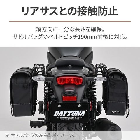 デイトナサドルバッグはもちろん、ベルトの左右ピッチ190mm前後のバッグに対応します。