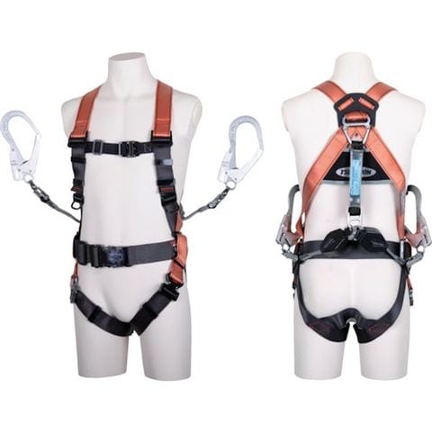 コアハーネス 胴ベルト付き ツインランヤード付き ロック機構付き巻取式コルトリトラ オレンジ Mサイズ