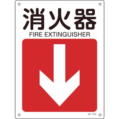 (株)日本緑十字社 緑十字 矢印付案内標識 消火器↓(下矢印) JA-413 300×225mm エンビ