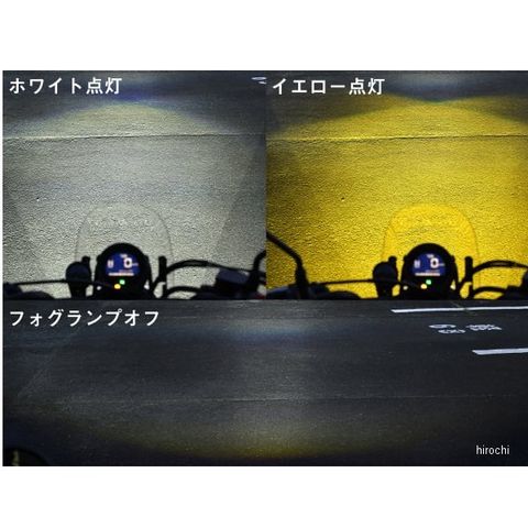 ファッション性の高いホワイトと雨天・霧時に見やすいイエローを、同一光軸上で切り替えできるフォグランプユニット。付属のクランプでエンジンガードなど外径φ22.2~28.6のパイプへ装着できます。車検対応のインジゲーター付ON/OFFスイッチ付属。2個1セット。