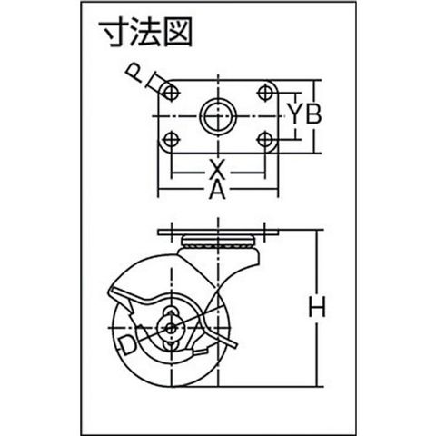 ・車輪径D(mm):50・タイプ:自在式(ストッパー付)・許容荷重(daN):30・許容荷重(kgf):30.6・取付高H(mm):67・取付座A(mm):51・取付座B(mm):31・取付ピッチX(mm):40・取付ピッチY(mm):20・取付穴径P(mm):5.5