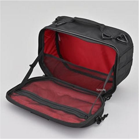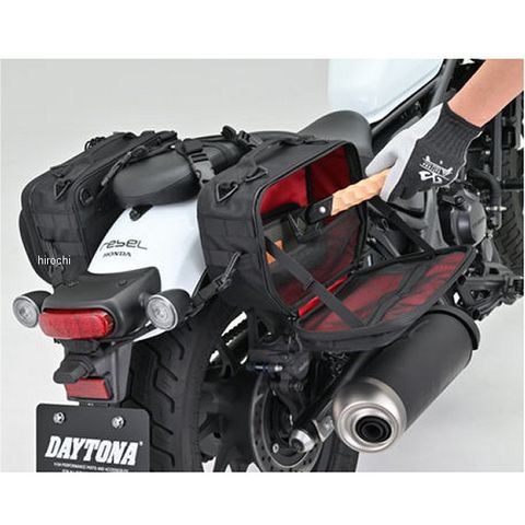 サイドバッグサポート不要の振り分けサイドバッグ。車体にフィットするので、バッグが大きく張り出しません。新開発のサイドバッグ専用イージーリングベルトで、素早く確実に固定できます。バッグ本体はパワーパネルとメタルフレームで型崩れしにくく、車体とあたる部分には傷つけにくい素材を採用。シートバッグ装着時でも荷物を取出しやすい横開きの蓋には、開き切らないストッパーや荷物がこぼれないネットが付いています。外側にはよく使うアイテム収納できるアウターポケット、内側には小物を整理できるインナーポケットもあります。持ち運びに便利なハンドル付きで、パルステープに別売りのシステムポーチを取り付けすることで、自分好みにカスタマイズ可能です。正面のタグは取り外しできます。コンパクトに収まる9L&9L。キャンプギアやレインウエアなどの収納に最適です。両側9Lなので、マフラーにも対応しやすいサイズ。