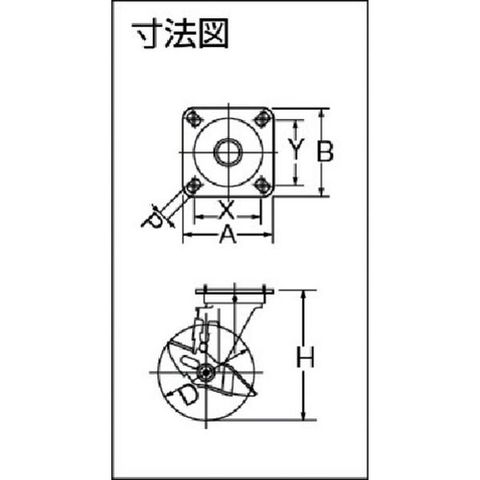 ・車輪径D(mm):65・タイプ:自在式(ストッパー付)・許容荷重(daN):70・許容荷重(kgf):71.4・車輪幅(mm):25・取付高H(mm):85・取付座A(mm):70・取付座B(mm):58・取付ピッチX(mm):55・取付ピッチY(mm):42・取付穴径P(mm):8.8