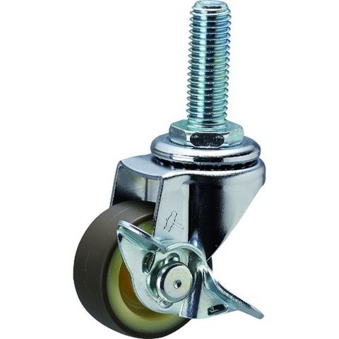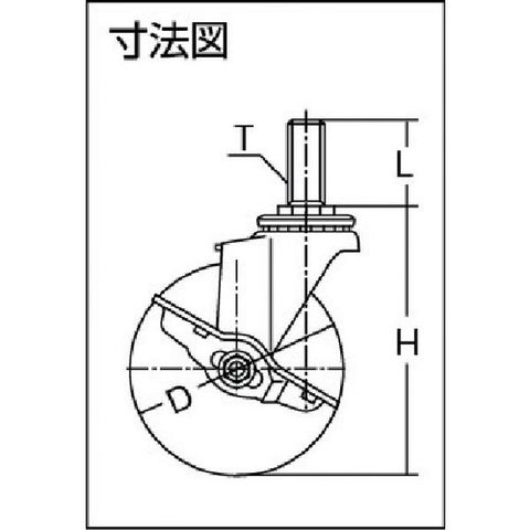 ・車輪径D(mm):38・タイプ:自在式(ストッパー付)・許容荷重(daN):30・許容荷重(kgf):30.6・車輪幅(mm):16・取付高H(mm):59・軸長L(mm):35・ねじT:M12・ねじピッチ(mm):1.75