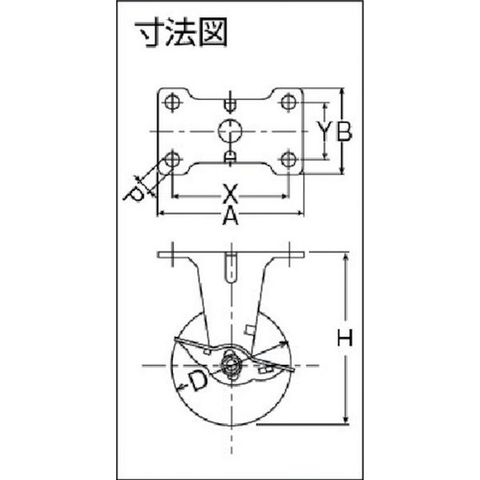 ・車輪径D(mm):100・タイプ:固定式(ストッパー付)・許容荷重(daN):50・許容荷重(kgf):51・車輪幅(mm):27・取付高H(mm):122・取付座A(mm):100・取付座B(mm):58・取付ピッチX(mm):82・取付ピッチY(mm):40・取付穴径P(mm):8.8・許容荷重(N):500