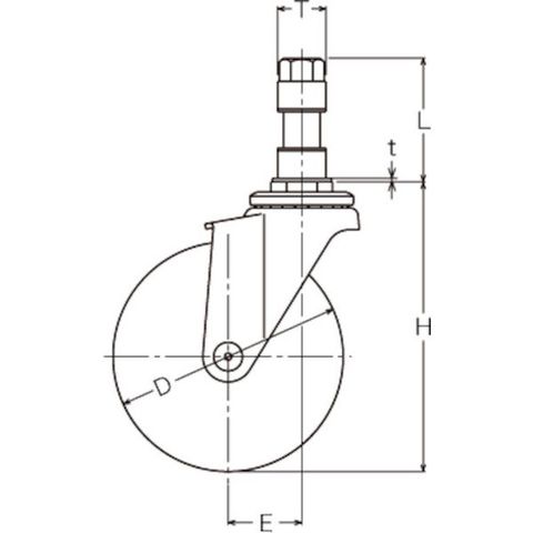 ・車輪径D(mm):75・タイプ:自在式・許容荷重(daN):40・車輪幅(mm):21・取付高H(mm):95・軸長(mm):52