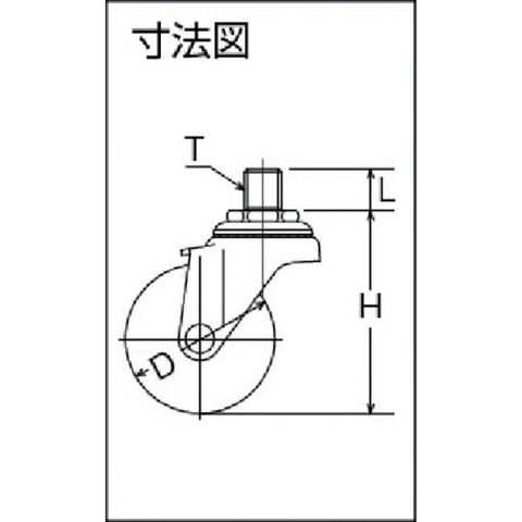・車輪径D(mm):50・タイプ:自在式・許容荷重(daN):30・許容荷重(kgf):30.6・車輪幅(mm):20・取付高H(mm):68・軸長L(mm):14・ねじT:UNF1/2・ねじ山:20山・許容荷重(N):300
