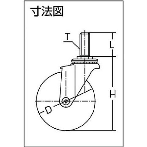 ・車輪径D(mm):65・タイプ:自在式・許容荷重(daN):40・許容荷重(kgf):40.8・車輪幅(mm):21・取付高H(mm):85・軸長L(mm):35・ねじT:M12・ねじピッチ(mm):1.75