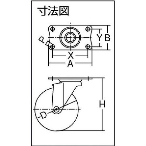 ・車輪径D(mm):125・タイプ:自在式・許容荷重(daN):70・許容荷重(kgf):71.4・車輪幅(mm):25・取付高H(mm):148・取付座A(mm):100・取付座B(mm):58・取付ピッチX(mm):82・取付ピッチY(mm):40・取付穴径P(mm):8.8