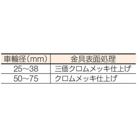 ・金具:スチール・金具表面処理:三価クロム化成処理・車輪:ナイロンホイール、熱可塑性ウレタン(65、75mmは、樹脂ブッシュ入)