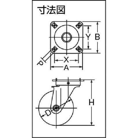 ・車輪径D(mm):125・タイプ:自在式・許容荷重(daN):130・許容荷重(kgf):132.6・車輪幅(mm):38・取付高H(mm):168・取付座A(mm):102・取付座B(mm):102・取付ピッチX(mm):75~80・取付ピッチY(mm):75~80・取付穴径P(mm):11.0・許容荷重(N):1300
