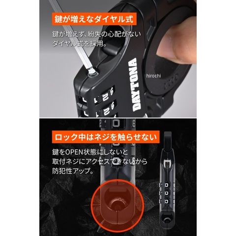 デイトナ スレンダーヘルメットロック ダイヤルタイプ