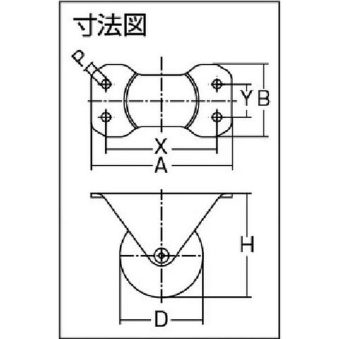 ・車輪径D(mm):125・タイプ:固定式・許容荷重(daN):120・許容荷重(kgf):122.4・車輪幅(mm):50・取付高H(mm):159・取付座A(mm):156・取付座B(mm):96・取付ピッチX(mm):125・取付ピッチY(mm):64・取付穴径P(mm):10.5