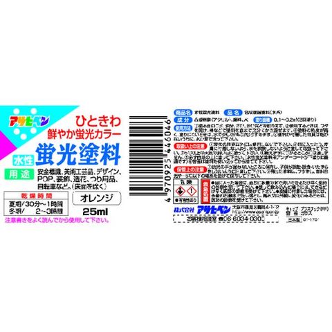 (株)アサヒペン アサヒペン 水性蛍光塗料 25ML オレンジ