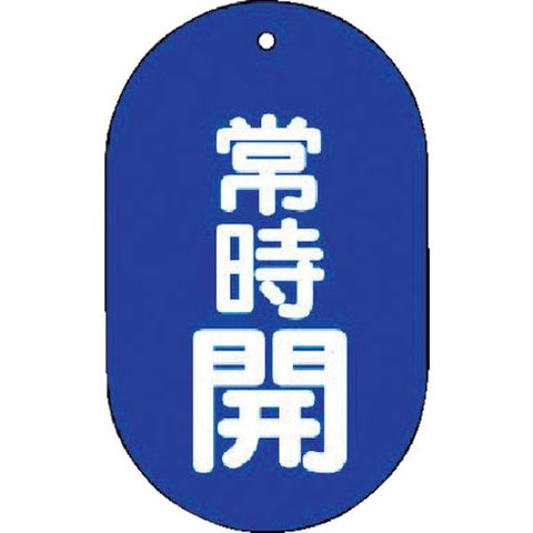 ・色:青・表示内容:常時開・青地(白文字)・縦(mm):60・横(mm):38・厚さ(mm):2.0・取付仕様:穴1ヵ所