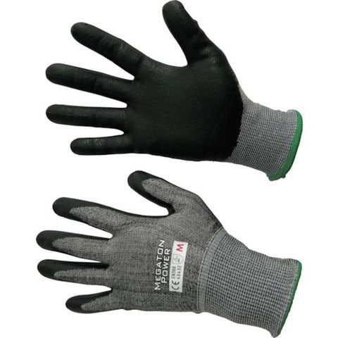 ・色:黒・サイズ:M・全長(cm):23.0・手のひら周り(cm):19.0・中指長さ(cm):7.6・厚さ(mm):1・ゲージ数:18・EN388 2016規格:4X43E・リストカラー:グリーン・すべり止め:ニトリルゴム