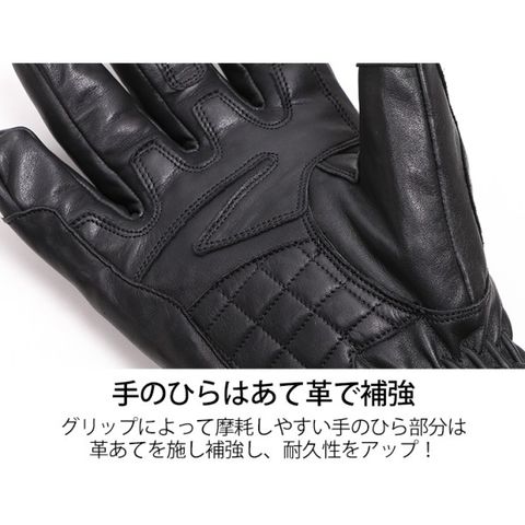 手のひら部分は革あてを施し耐久性アップ。