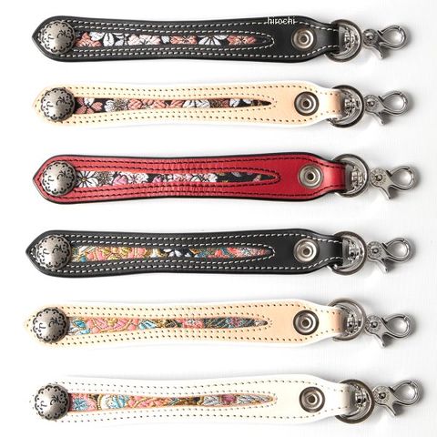金襴と革色の組み合わせで、バリエーション豊富なキーホルダー。
