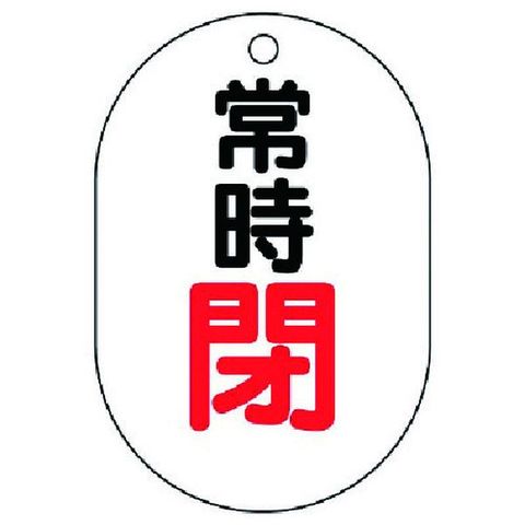 ・色:白・表示内容:常時閉・白地(赤文字)・縦(mm):70・横(mm):47・厚さ(mm):2.5・穴径(mm):4・摘要:4mmΦ穴上1・取付仕様:穴1ヵ所