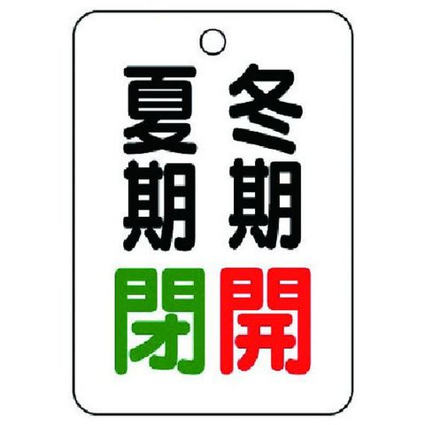 ・色:白・表示内容:夏期閉/冬期開・縦(mm):65・横(mm):45・厚さ(mm):2.5・穴仕様:4mmΦ穴上1・5枚1組・片面表示・寸法(mm):65×45×2.5厚