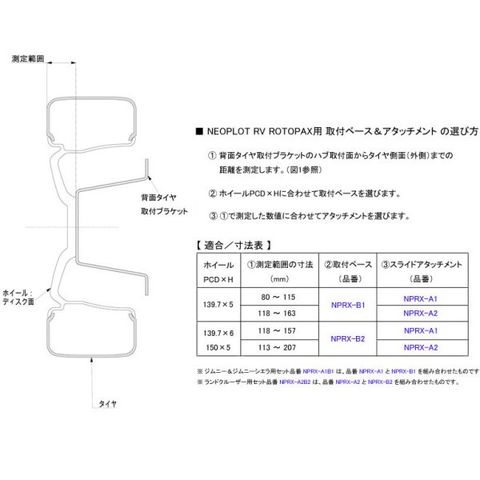 ※ランドクルーザー及びランドクルーザープラドの背面タイヤ&ホイール装備車に適合。社外ホールの場合は、寸法測定範囲要確認。