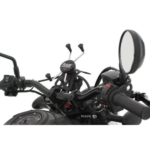 ラムマウントを代表する汎用スマホホルダー「Xグリップ」のMサイズをオートバイのハンドルポストへ取り付けることができるマウントセットです。