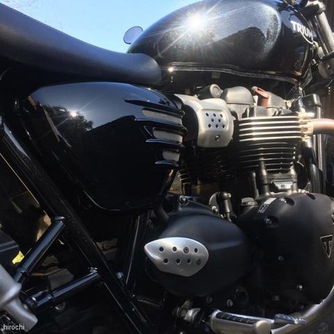 モートーンカスタムズ サイドカバー リブ 16年-25年 トライアンフ Street Twin/Speed Twin 900 グロス黒