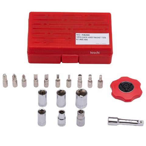 :収納に便利でコンパクトな専用ケース付き。送り角5度で細かい作業にも対応します。六角ソケットは、オートバイ整備でよく使用する6、8、10、11、12mmのセット。