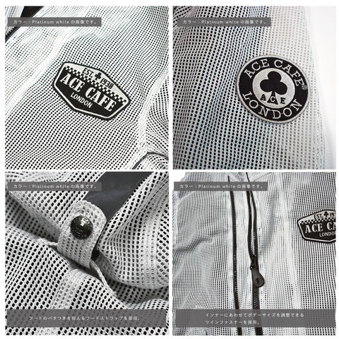 エースカフェロンドン ACE CAFE LONDON 春夏モデル W2 フーディーシースルーメッシュジャケット Pホワイト Lサイズ