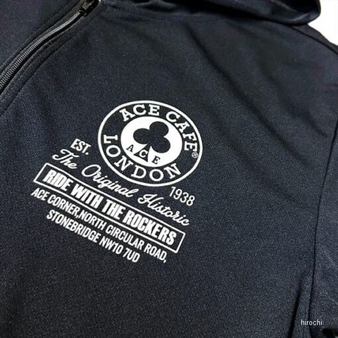 エースカフェロンドン ACE CAFE LONDON 春夏モデル DRYフーディ ヒストリック サークル 黒 Mサイズ