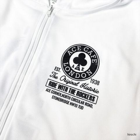エースカフェロンドン ACE CAFE LONDON 春夏モデル DRYフーディ ヒストリック サークル 白 Mサイズ