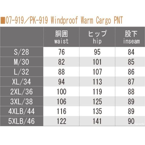 PK-919 コミネ KOMINE ウインドプルーフウォームカーゴパンツ ネイビー 2XL/36サイズ