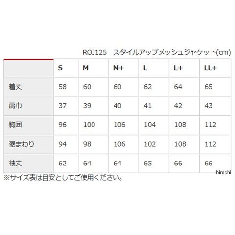[M+][L+][LL+]サイズはRossoStyleLab独自の規格です。
