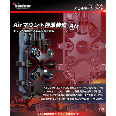 標準装備の〔Airマウント〕はエアサスの様なエアーキャップがホルダーをフロートさせ、