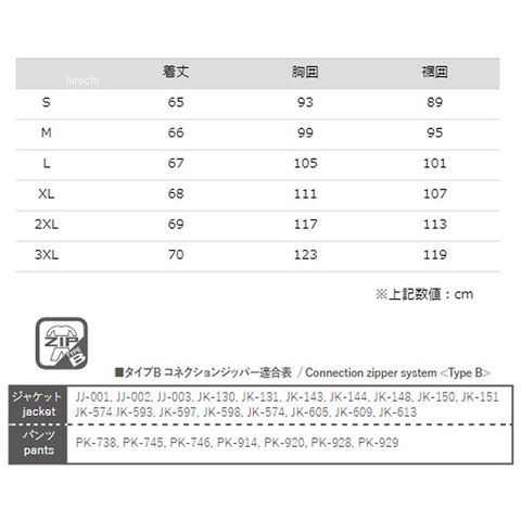 ・タイプBのコネクションジッパー装備のジャケット。対応パンツと接続することでずり上がり、ずり下がりを防止。