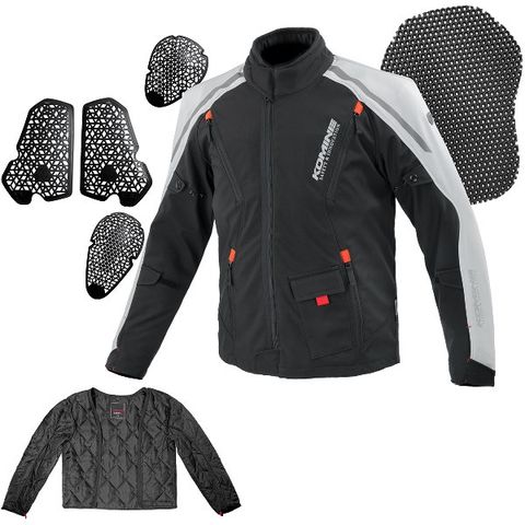 コミネ KOMINE 秋冬モデル プロテクトソフトシェルジャケット ソリアーノ ライトグレー/黒 Sサイズ
