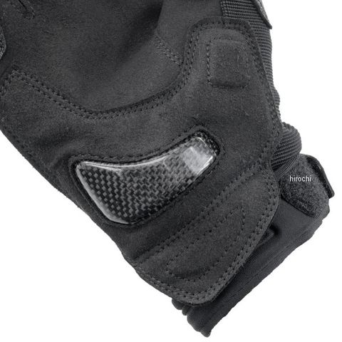 カーボンナックルガードと掌への衝撃を逃がすカーボンスライダーを装備したレザーとメッシュのコンビネーショングローブ。プロテクター付きでも握りやすい立体パターンを採用。