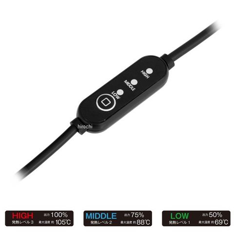 電源のオン・オフと3段階の温度調整を手元で行える、専用コントローラーケーブルを装備。