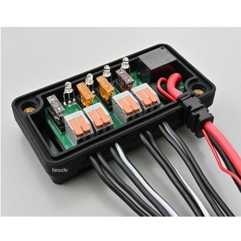 内蔵ブレードヒューズを交換し、アンペア数が変更可能です。LEDインジケーターでケース外から導通を確認できます。※合計で20A以下の範囲