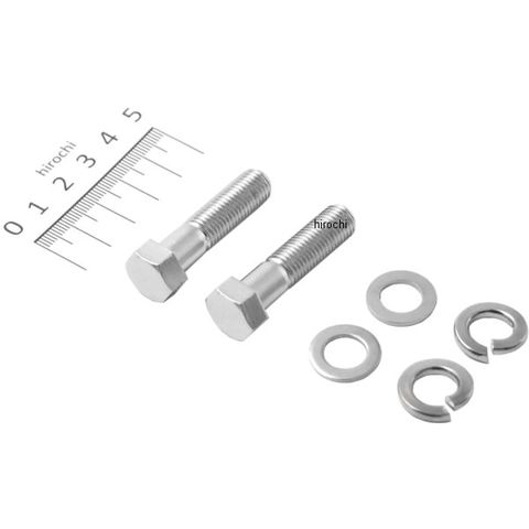 六角ヘッドタイプのボルト2本に加え緩み留めのスプリング、フラットワッシャー各2枚を付属させた1キャリパー分。