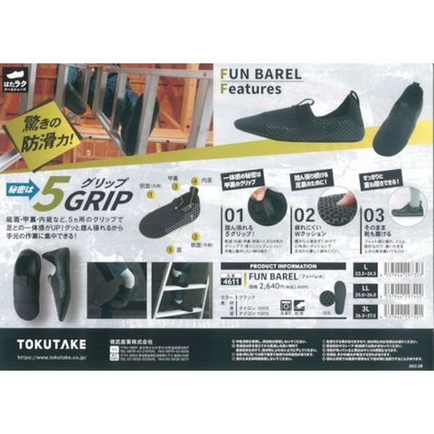 徳武産業(株) はたラク FUNBAREL(フンバレル) ブラック 3L(26.5~27.5)