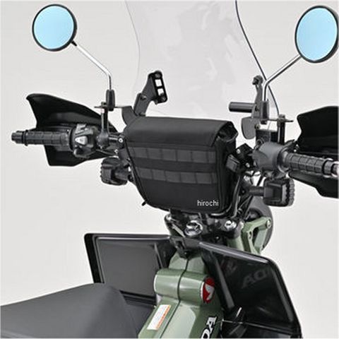 ハンドルやサイドカバー付近の装着にベストな2Lサイズ。ハンターカブやDAX125などアップハンに最適です。フラップ裏にはスマホを入れられるクリアーポケットつき。