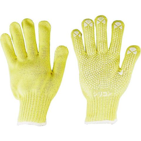 ・ケブラー[[R下]]と同等の強度を保有するパラ系アラミド繊維であるトワロン[[R上]]を使用した耐切創すべり止め付き手袋です。・耐熱性(約300℃)のあるシリコン樹脂のすべり止めです。