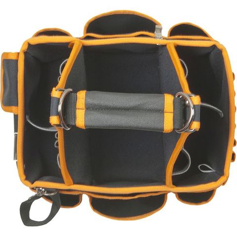 ・カラビナ用のループホルダー付です。・手になじみやすく、耐久性に優れたハンドルです。・間口が広く、工具の出し入れが容易です。・底は完全防水です。・左右どちらか一方側にテープ、カードや携帯電話を収納できるポケットです。・ビッグサイドポーチにはネジ、ナット、ワッシャー、端子など、小さな消耗品のためのプラスチックボックスが入っています。
