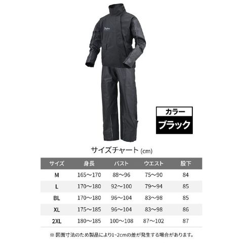 48224 デイトナ DR001 ハイパフォーマンスレインウエア 上下セット 黒 XLサイズ