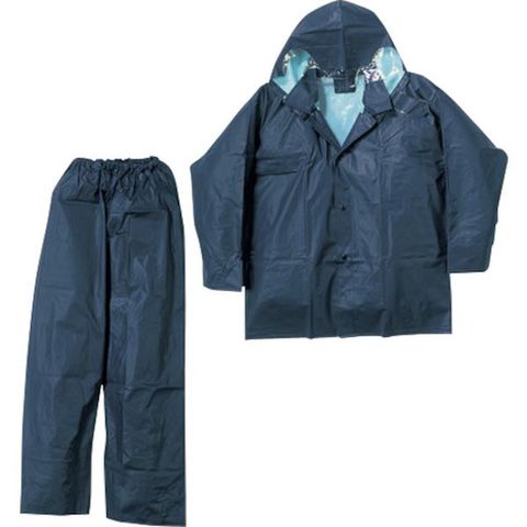 ・糸入り両面PVCラミネート加工により丈夫なレインスーツです。
