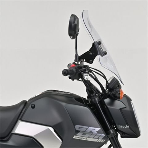耐衝撃性に優れるポリカーボネート製のウインドシールド。表面には傷がつきにくいハードコート処理を施しています。ウインドシールドは約10度の角度調整が可能。スマホホルダーなどの装着に便利なオプションバー付き。